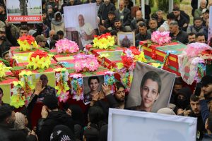 Di dawiya merasîmê de, cenazeyên şehîd Diyar Qamişlo, Çiyager Armanc, Zeyneb Mihemed, Hezel Arjîn û Mihemed El-Mihemed Merî Ne’ma di nav sloganên bilindkirina têkoşînê de hatin veşartin.