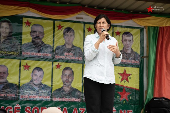 “Em hêza xwe ji şehîdên xwe digirin. Dijmin nikare tifaqa gelê me yê berxwedêr xira bike. Îro li vê derê yekîtiyeke rastîn di navbera Kurd, Ereb û Suryanan de heye; ev yekîtî bi xwîna şehîdan hatiye avakirin. Em ê rê nedin dewleta Tirk a dagirker û dûvçûnên wê ku vê jiyana hevbeş xira bikin.”