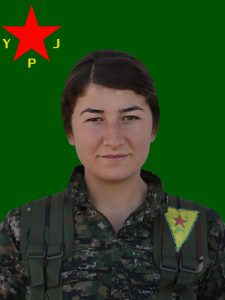 الاسم الحركي:ازدا كفر الاسم والكنية:شيرين كويو اسم الام:مهيتاب اسم الاب:اورهان مكان وتاريخ الاستشهاد:سري كانيه/22-09-2014