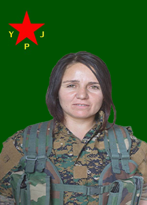 الاسم الحركي : سارا ديرك الاسم والكنية: روكن ايميرجي اسم الأم : جوهر اسم الأب:عادل مكان وتاريخ الأستشهاد: عفرين 14/3/2018