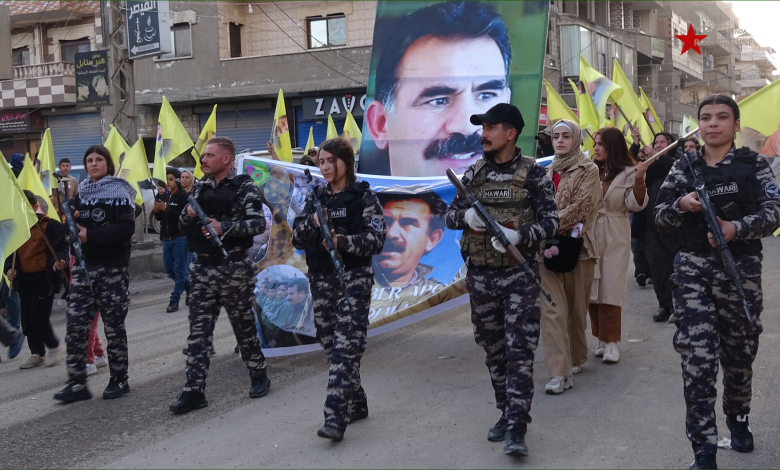 و انتهت المسيرة برفع صور القائد عبدالله أوجلان على الأبنية الشاهقة مع ترديد الهتافات ” تحيا مقاومة القائد”،”يعيش القائد عبدالله أوجلان”.