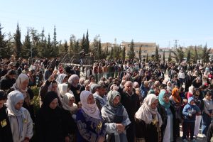 حيث وُوري الجثمانان الثرى وسط هتافات وترديد شعارات الشهداء أحياء لا يموتون.