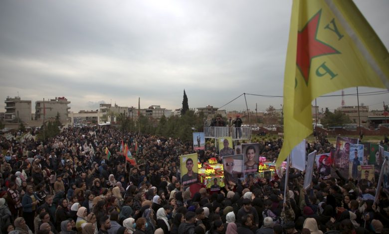 نظم مجلس عوائل الشهداء في مدينة قامشلو، اليوم، مراسم تشييع لكوكبة من شهداء قوات سوريا الديمقراطية ووحدات حماية المرأة،