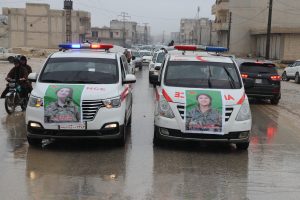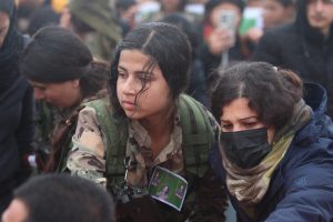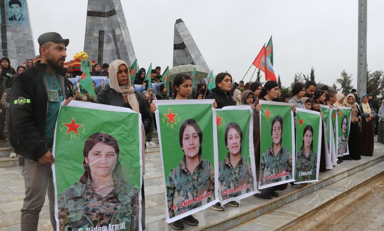 The people of the city of Kobani held a funeral for the two fighters of the Women’s Protection Units, Siyajin (Diala Koro) and Judi Rojhelat (Juliana Sido), while an in-absentia ceremony was held for the fighter Nudem Ararat (Delfin Hasso).