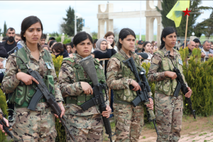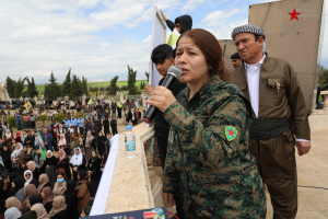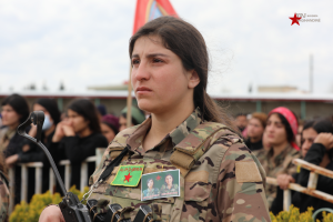 Viyan Lazgin, a commander in the Women’s Protection Units, also delivered a speech, stating: